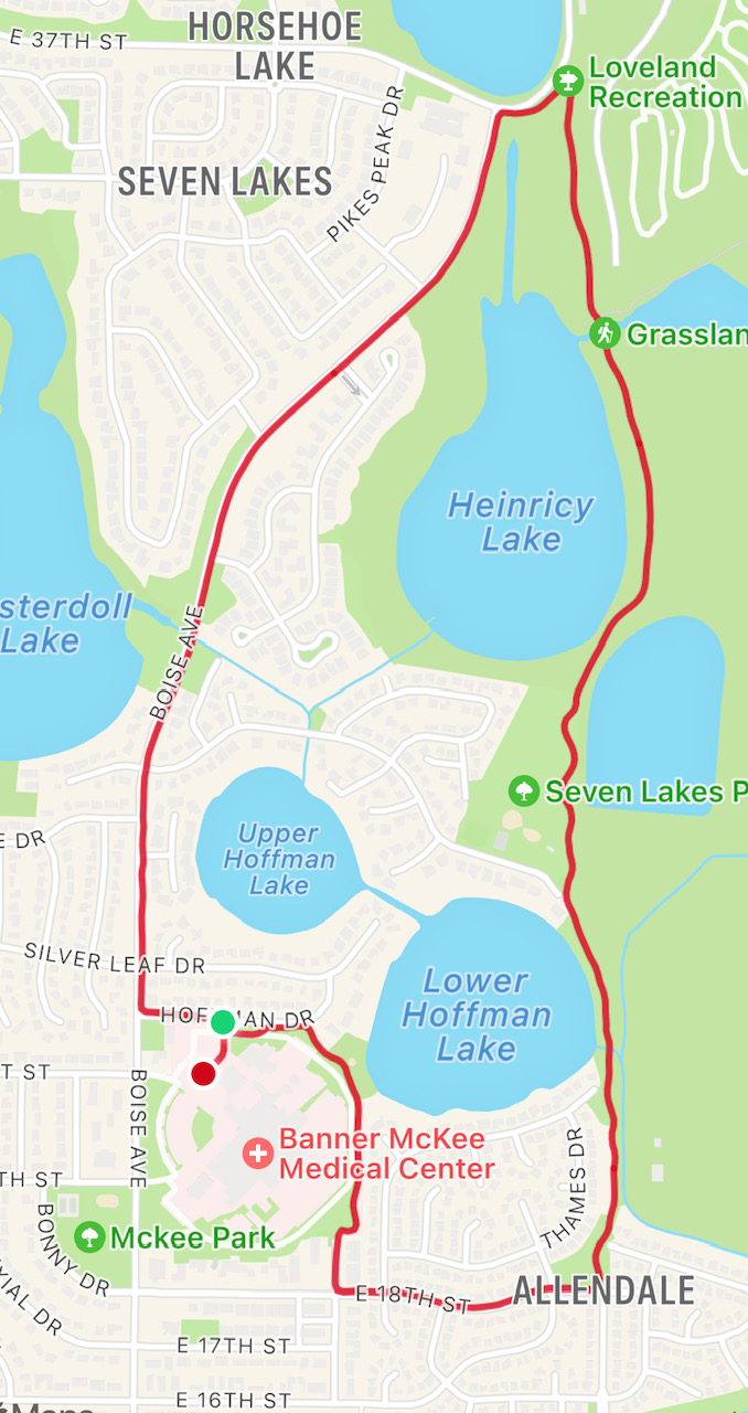 The starting and finish line(s) are located at McKee Medical Center located at 2000 N Boise Ave, Loveland, CO 80538